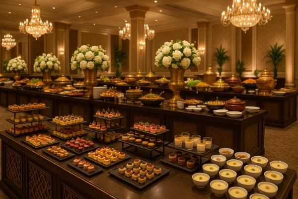 Royal buffet, dessert counters, multi-cuisine setups & premium décor serving.